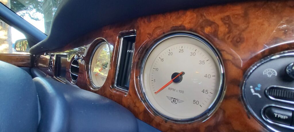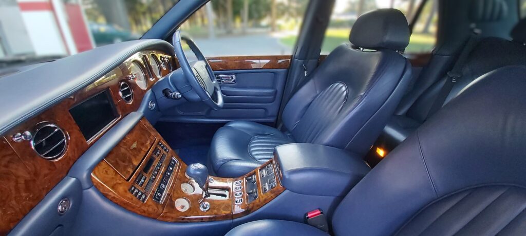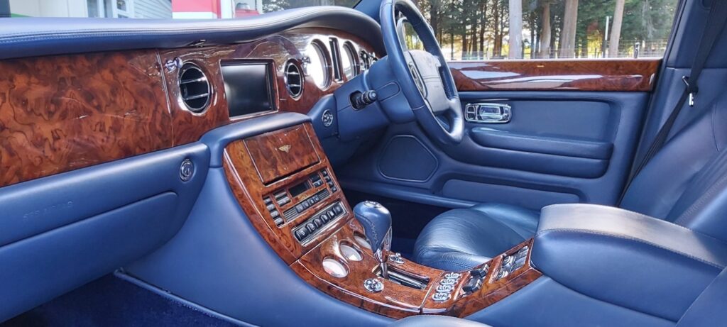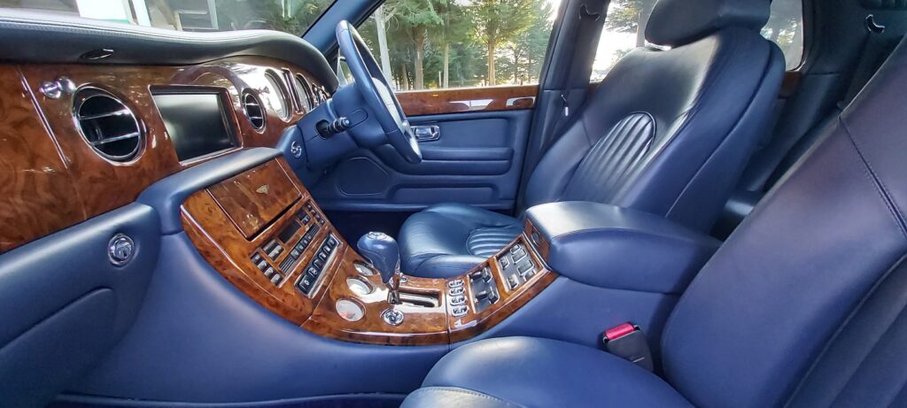 - Inside, the Bentley Arnage Red Label retained a lavish use of premium leather upholstery, polished wood, and chrome trims, creating an ambiance defining automotive luxury. Leather occupies most of the interior, being on the seats and every touch surface, and where there's no leather, you're likely to find wood, which adds a sense of warmth and timeless elegance. The chrome bits, mainly used on the controls on the dashboard and center console, add a tactile and luxurious feel to the touch, enhancing the premium atmosphere within the cabin. To improve rear legroom in the Bentley Arnage Red Label, Bentley redesigned the front seats with higher, slanted backs and re positioned them slightly forward. Exquisite leather seats are offset with rich wood trim. Elegant analog gauges reminds us of Duesenberg in its heyday. A seemingly limitless number of comfort/convenience controls are within easy reach — heated seats, navigation system (still in Japanese), dual climate control, the works. The carpeting is plush, and the doors and panels are thick and stylised. Electrochromic glass reduces the glare of lights at night. Even the rear seats can be powered around for more comfort.
