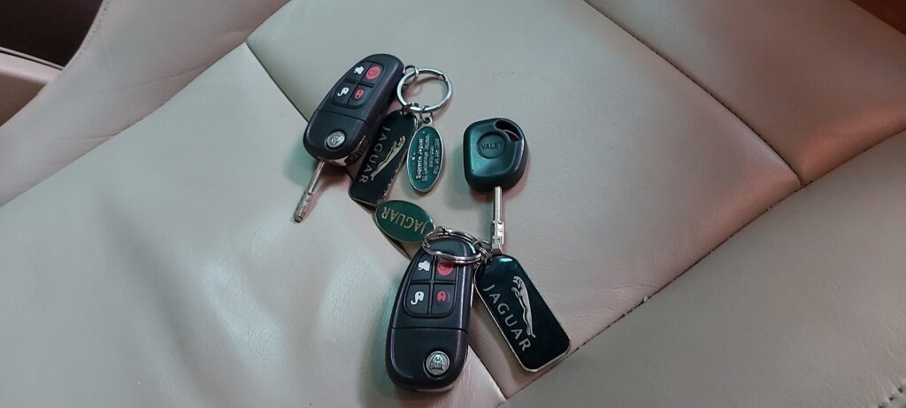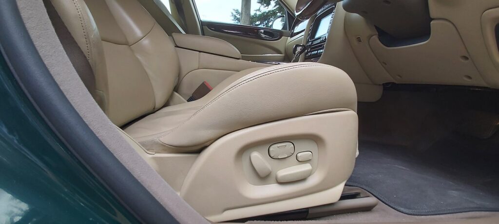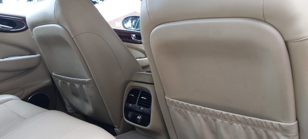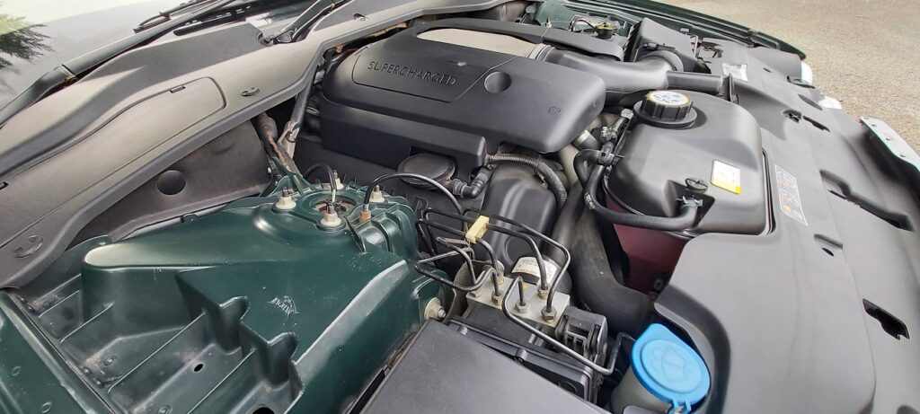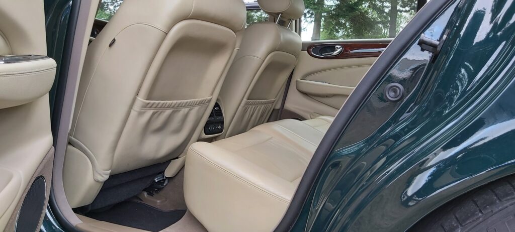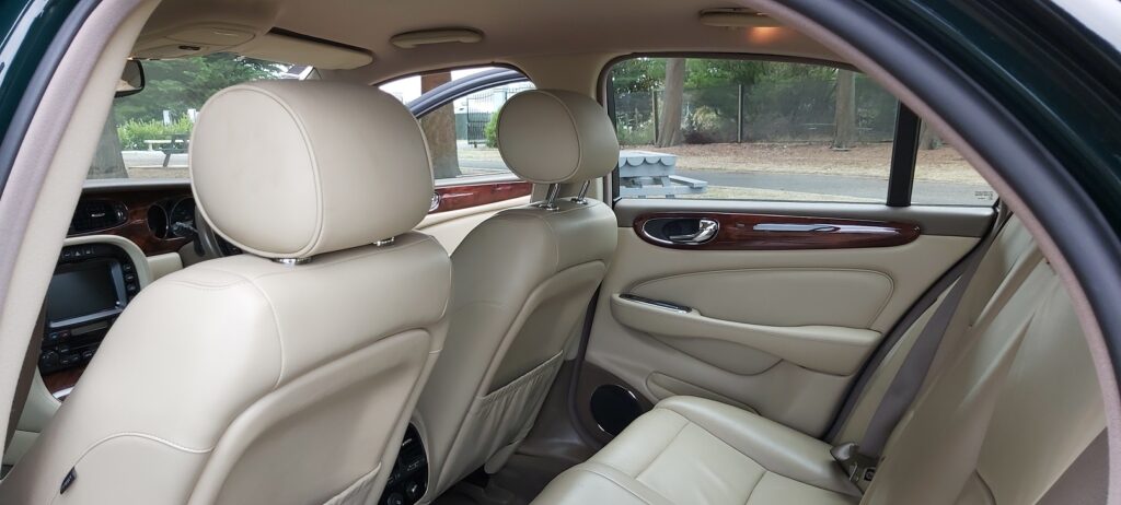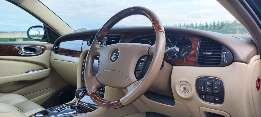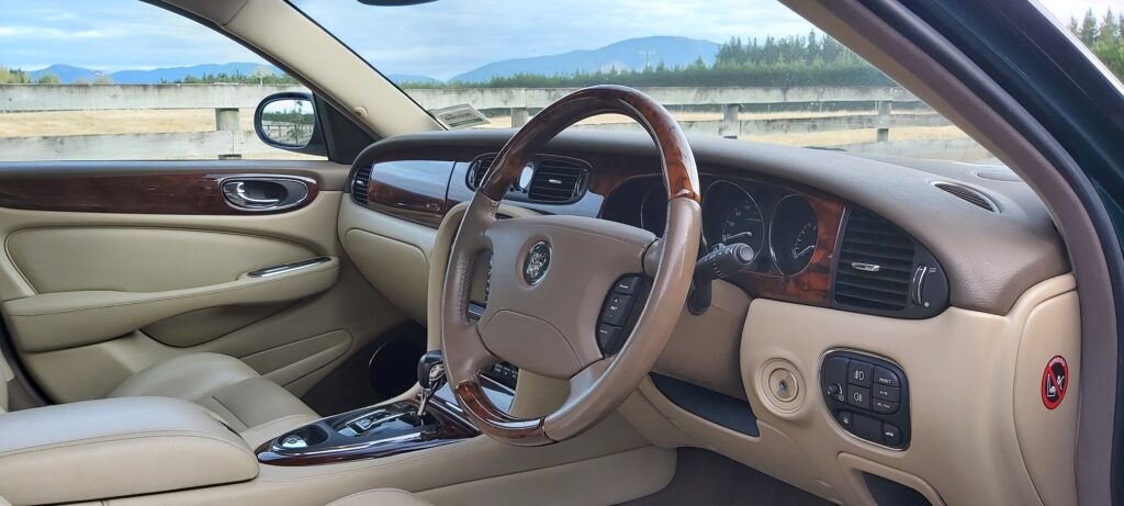 - Immaculate interior - good hood lining etc and comes with many gadgets, including LCD touchscreen. The cabin is sporty and elegant, featuring Jaguar’s most luxurious amenities at the time. The seats, the dashboard, most of the door panels, center console and steering wheel are covered in soft leather. The dash, center console, door panels all immaculate.