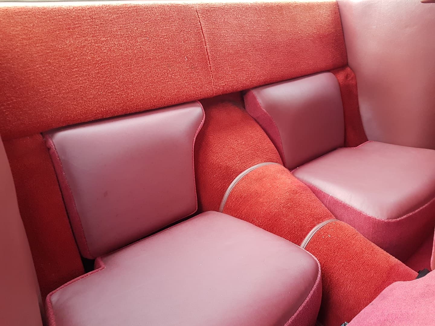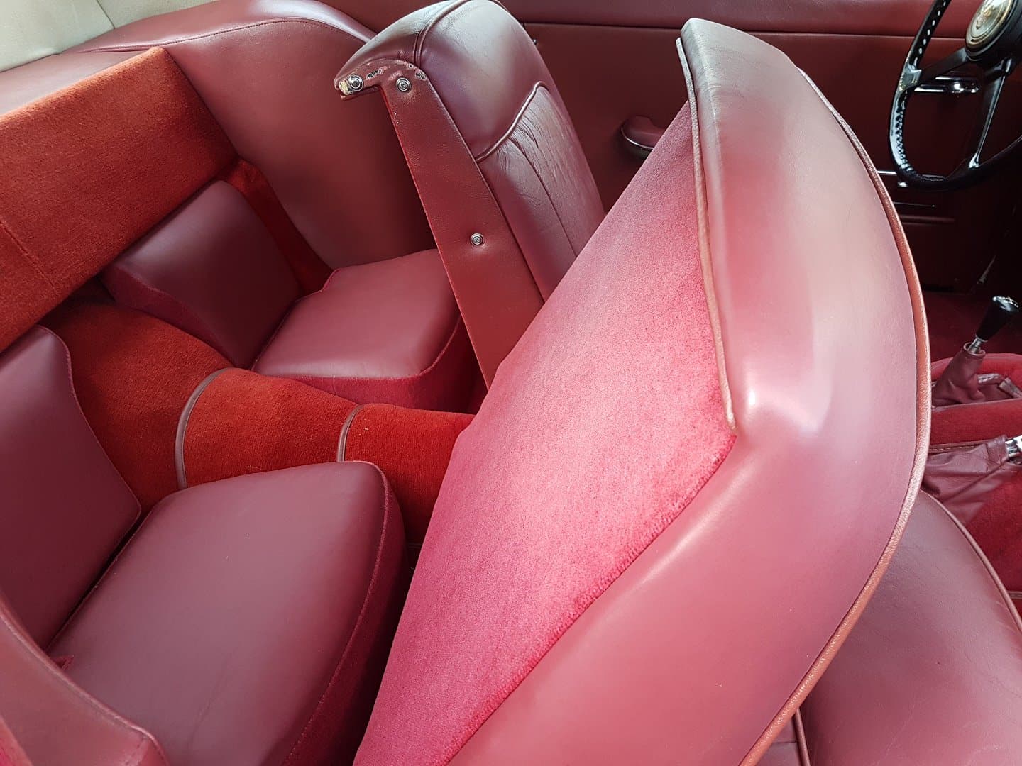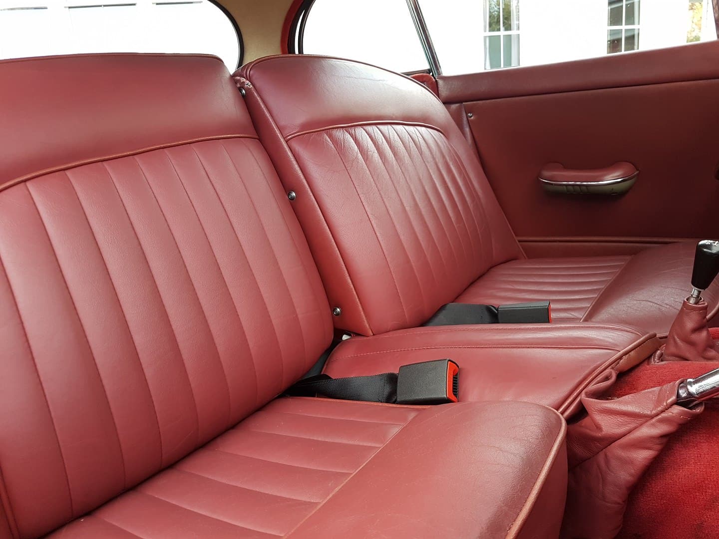 - The all-red interior is pristine with the leather seats, carpets, headliner, door panels, and leather-trimmed instrument panel all meticulously cared for.