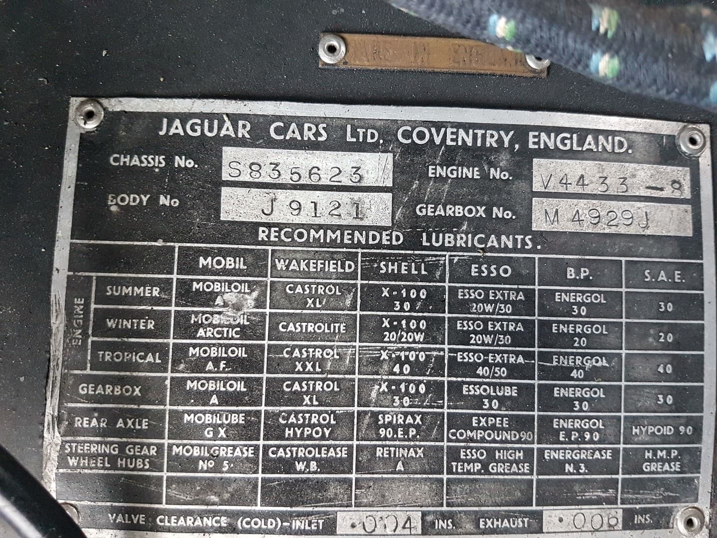 - Fully matching number XK150 according to the Production Record Trace Certificate and also the ID plate on the car and of course as confirmed by the photo of the Engine number - all consistent.