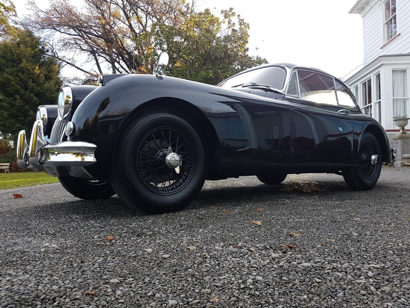 - This XK 150 is equipped with five factory knock-off wire wheels, including the spare, and rides on period-correct Coker Classic blackwall bias tires.
